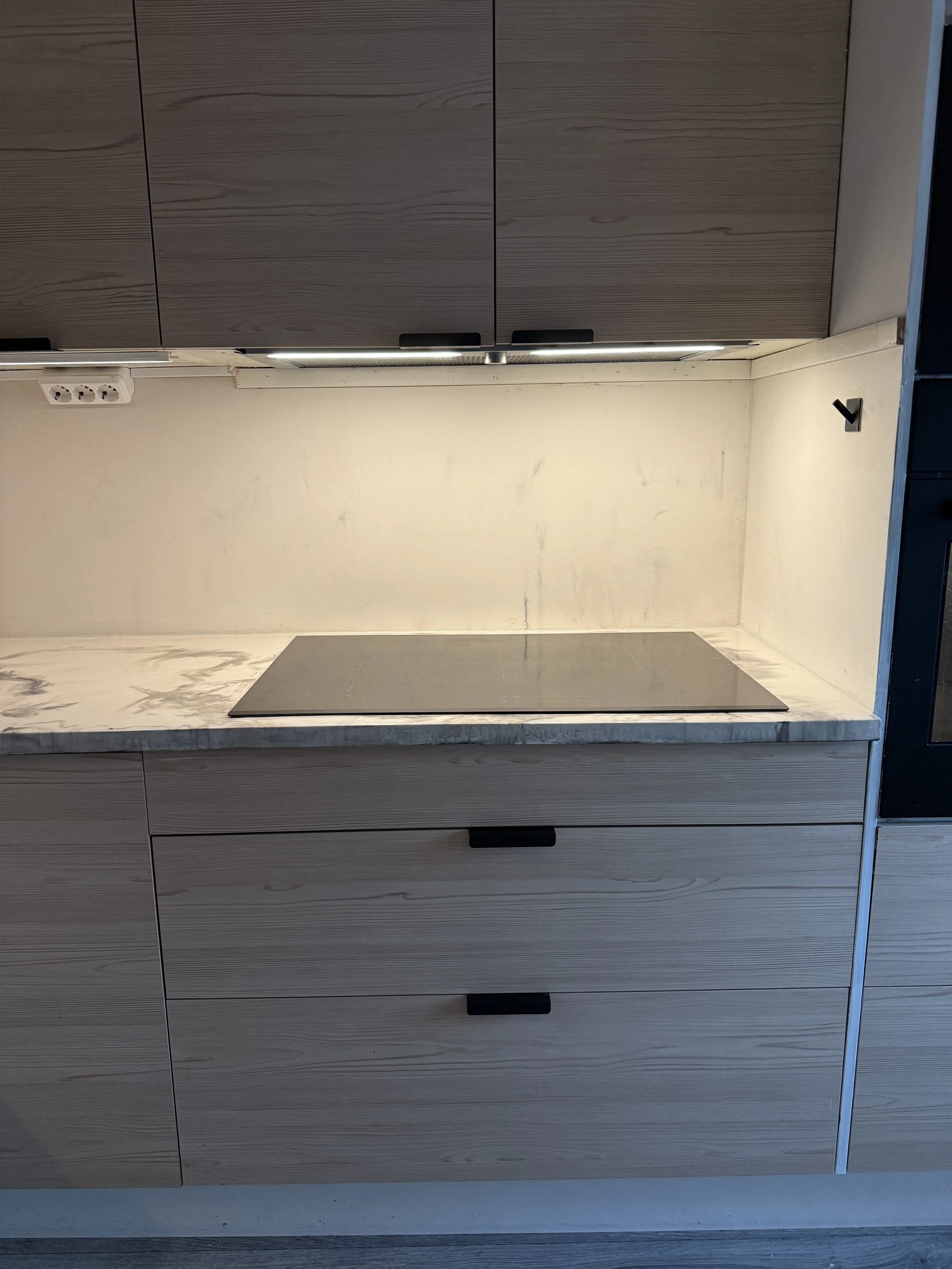 Her er det lagt mikrosement på vegg og epoxy på benkeplaten.